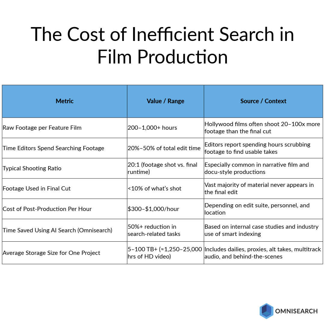 That’s where most teams start losing time. Editors waste hours trying to track down a specific version of a scene. Assistants are stuck digging through external drives or asking around about a forgotten filename. Omnisearch removes that dependency completely.